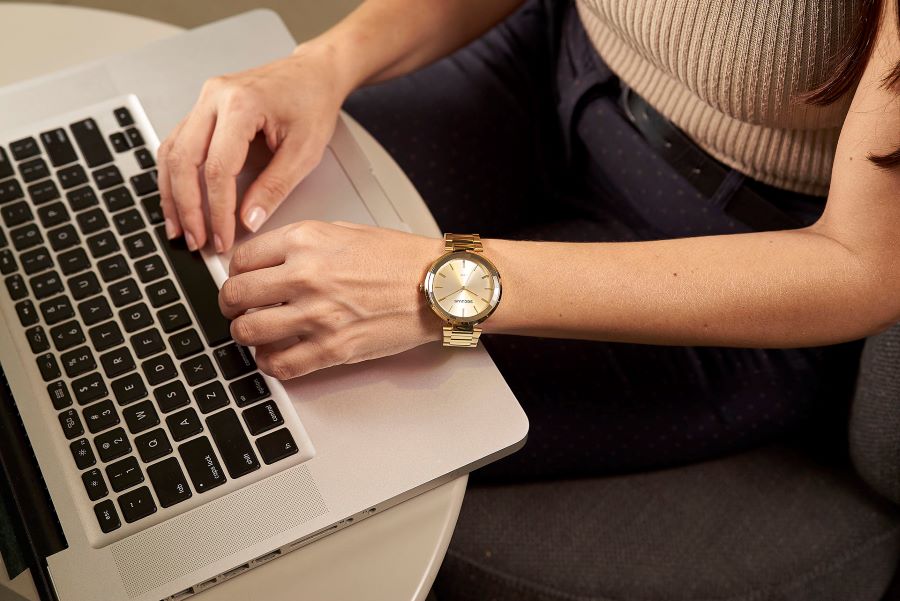 Com design moderno, este relógio analógico possui catraca facetada, mostrador minimalista e pulseira semi sólida em aço com folheação dourada e fecho de pressão. É um relógio fácil de combinar e que oferece um ótimo caimento a todos os tamanhos de pulso. Esse relógio possui a caixa em 4 cm de tamanho.