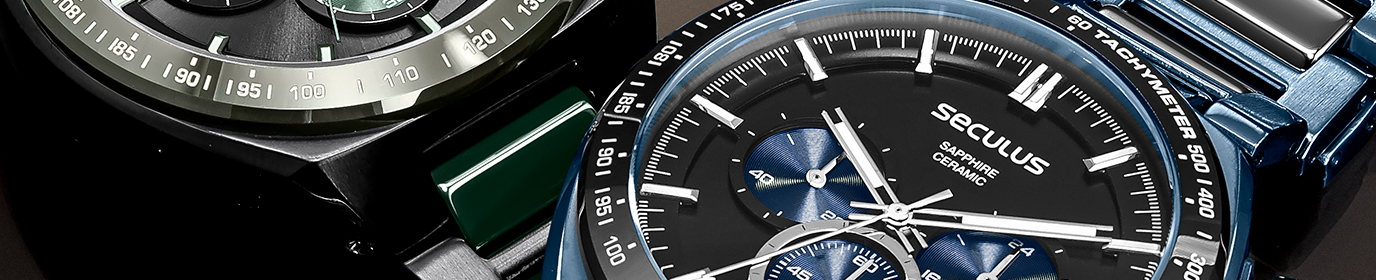 Relógio Masculino Cronógrafo Aço e Cerâmica Azul e Preto