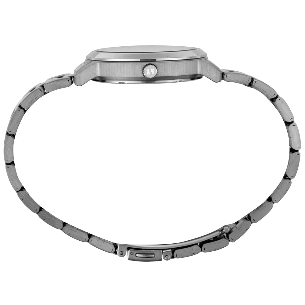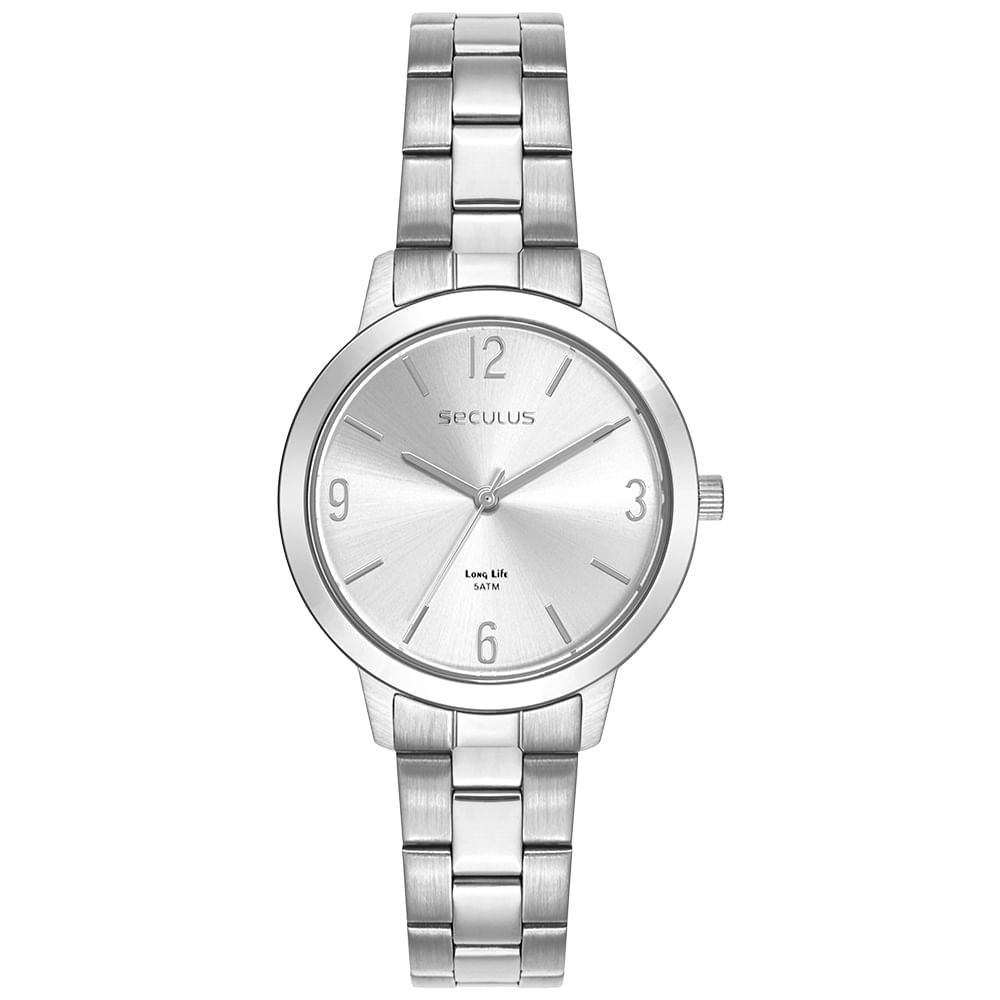 A Pulseira em aço com fecho de pressão, combinando segurança, conforto e sofisticação. Movimento analógico de qualidade e resistência à água de até 5 ATM, ideal para o uso diário com proteção contra respingos e chuva leve.