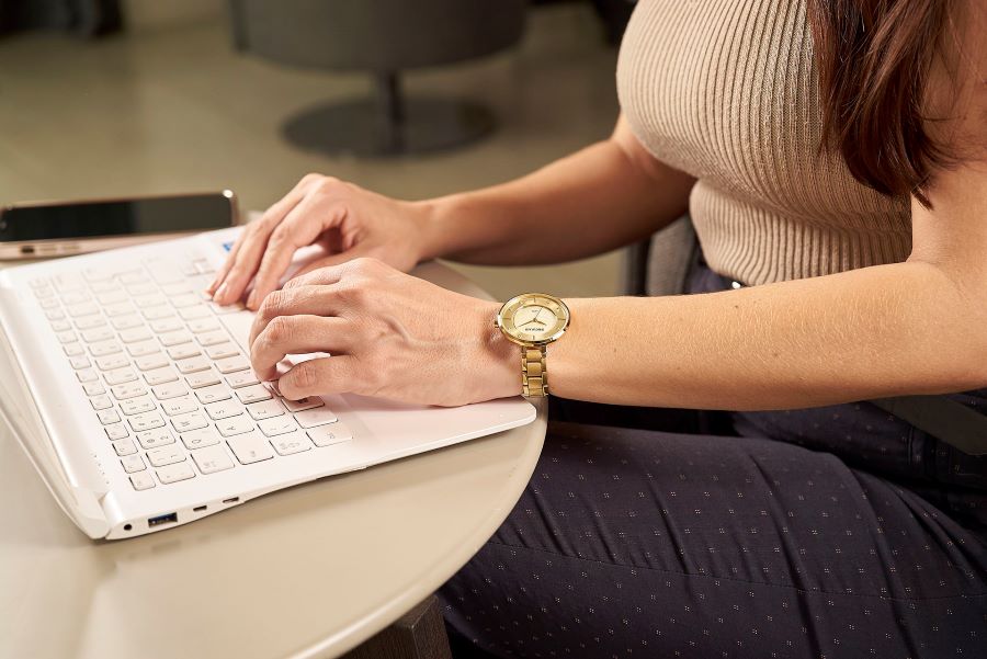 Este relógio tem visor madrepérola, caixa dourada e função analógica. A pulseira em aço possui fecho por acionamento lateral. Esse relógio possui a caixa em 3,6 cm de tamanho.