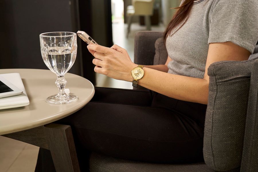Com detalhe nos elos, terminal da caixa com design diferenciado. Este relógio contém visor champagne e caixa de metal especial dourado com função analógico. A pulseira trabalhada em aço dourado, possui fecho por acionamento lateral. Esse relógio possui a caixa em 3,2 cm de tamanho.