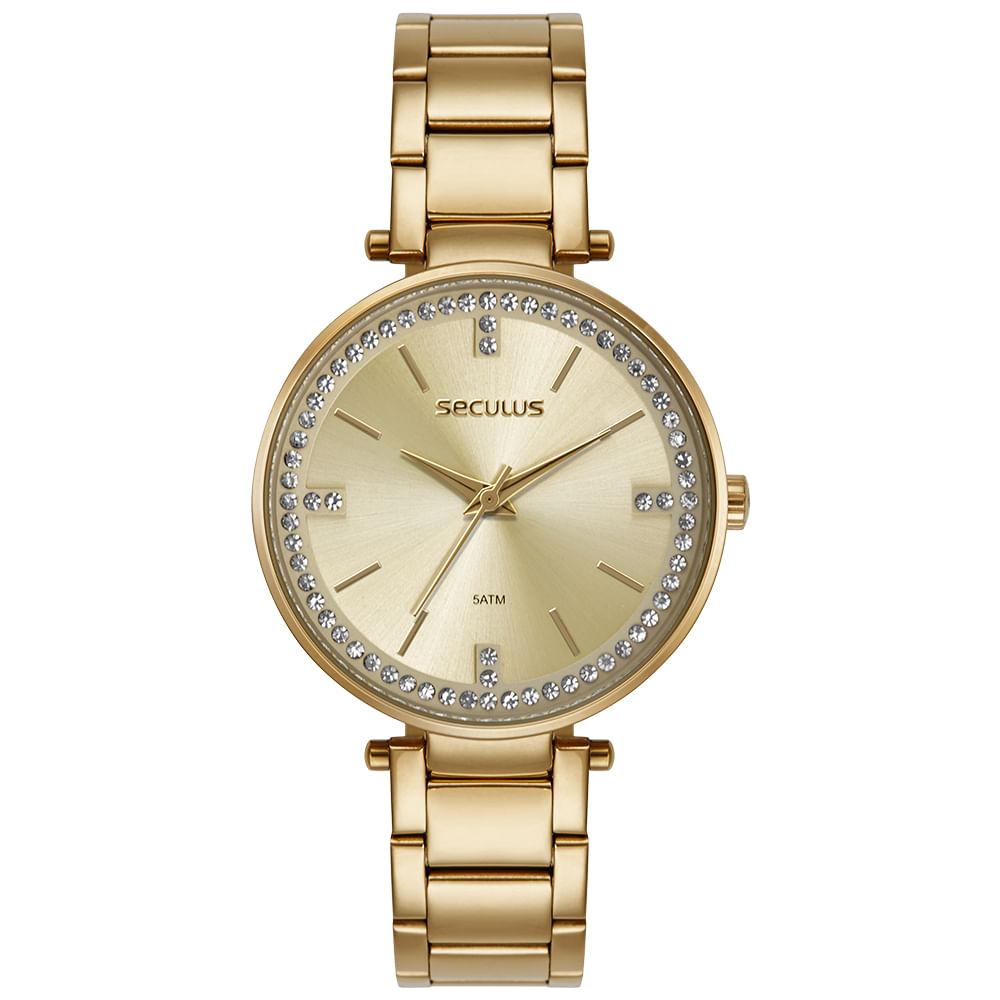 Este acessório feminino é a combinação perfeita de funcionalidade e elegância. O brilho dos cristais no mostrador champagne transforma o relógio em uma verdadeira joia. Seu funcionamento analógico e o design com visor amplo fazem dele uma peça de destaque, capaz de complementar looks com muito charme.