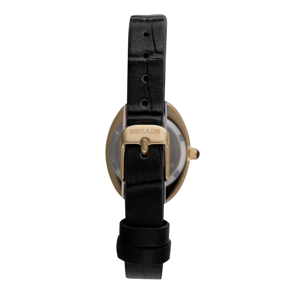 A pulseira em couro sintético garante conforto para o uso diário e complementa o estilo tradicional. O fecho de fivela é prático e seguro para o ajuste no pulso. A função analógica é precisa e mantém o mostrador clean.