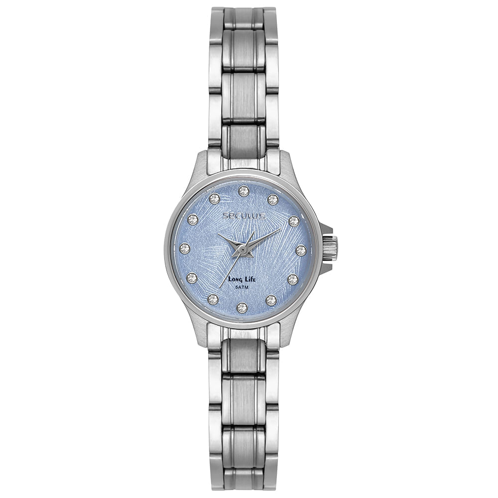 Além do design, o modelo oferece resistência à água de até 5 ATM, movimento analógico confiável e garantia de 2 anos pela Seculus. Perfeito para quem busca um relógio feminino com visual luxuoso e acabamento de qualidade.