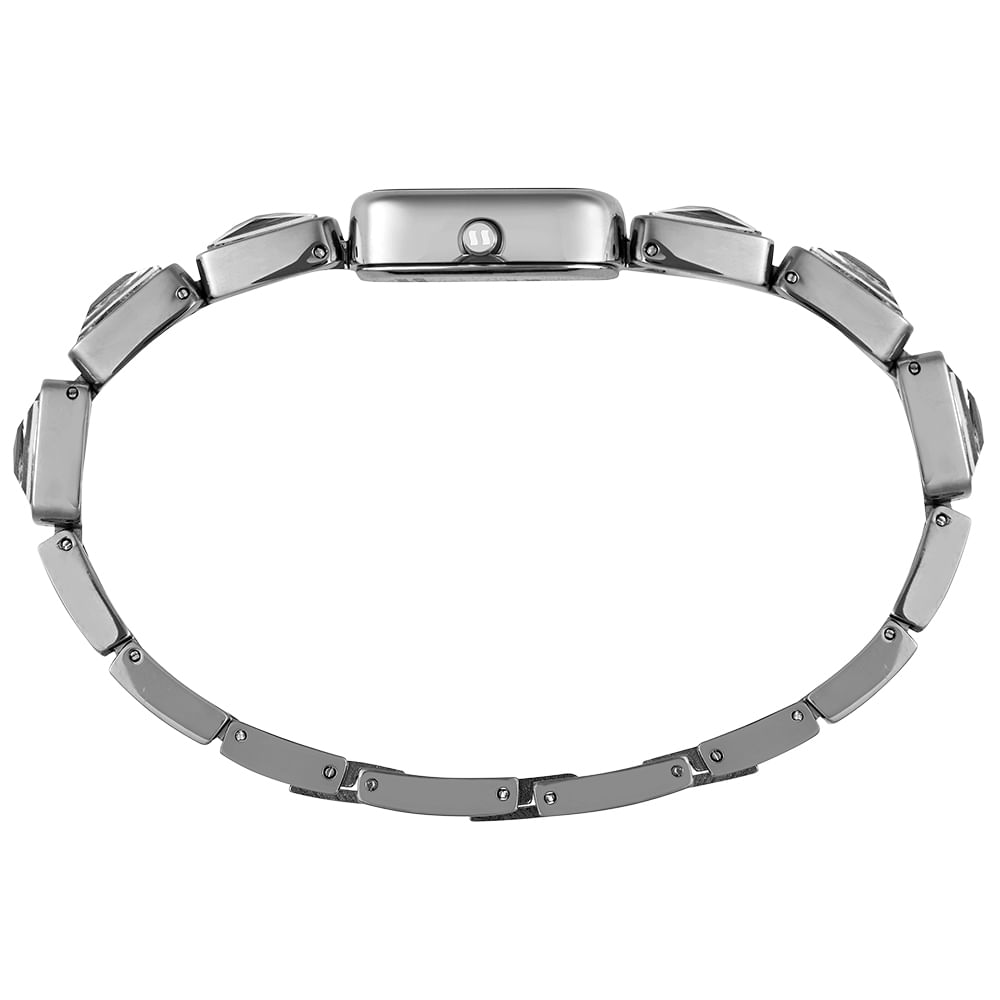 Um relógio feminino extremamente delicado e elegante, com um distinto formato de caixa quadrado. Feita em Metal Especial, a caixa possui apenas 21mm, ideal para pulsos mais finos. O mostrador branco com marcação em index completo oferece um visual minimalista e clean.