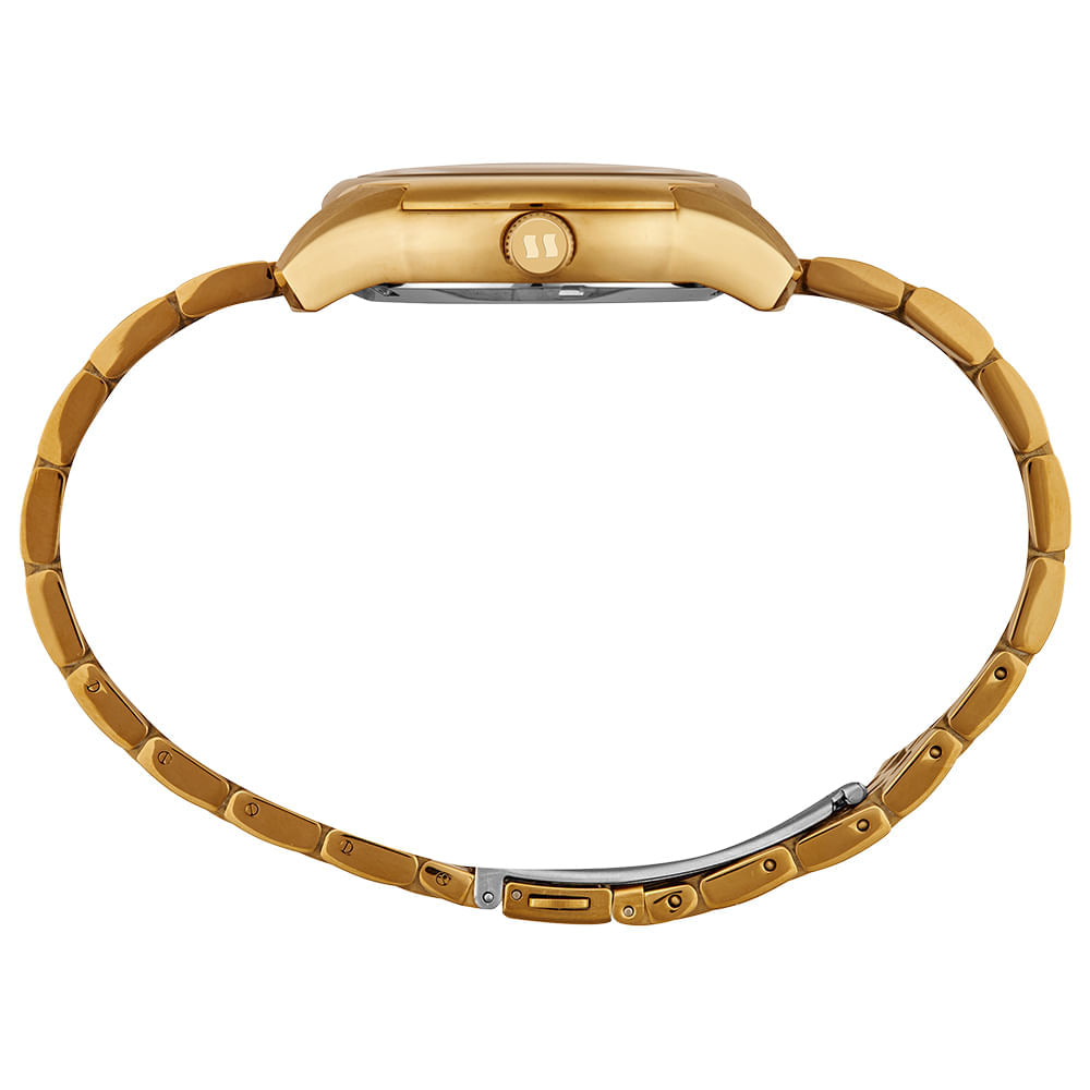 Deixe-se hipnotizar por seu mostrador esqueleto, que oferece uma visão privilegiada do coração pulsante da máquina. O mostrador vazado é uma declaração de confiança, revelando a complexidade do mecanismo interno. O acabamento inteiramente dourado eleva o design a um patamar de opulência e exclusividade. Forjado em aço inoxidável e finalizado com um impecável banho de ouro, este relógio foi construído para impressionar e durar. A pulseira robusta, também em aço dourado, garante um visual imponente, além de conforto e segurança com seu fecho de implantação.